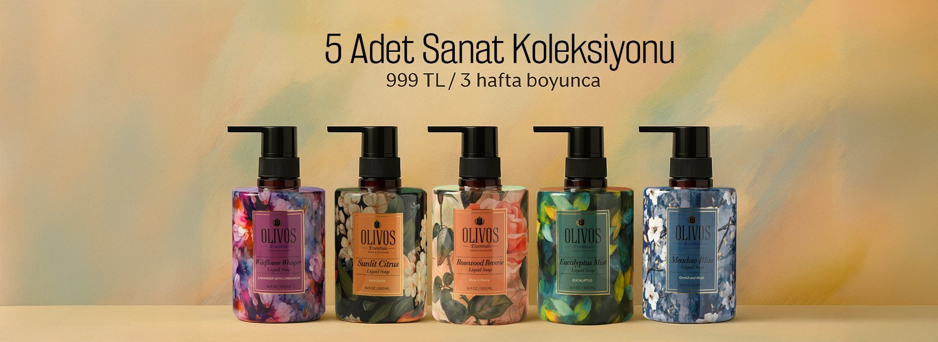 Olivos Sıvı Sabun Sanat Koleksiyonu Deneme Seti: Tablo Gibi Şişe Muhteşem Koku Yoğun Nemlendirici 5 Adet 500 ML